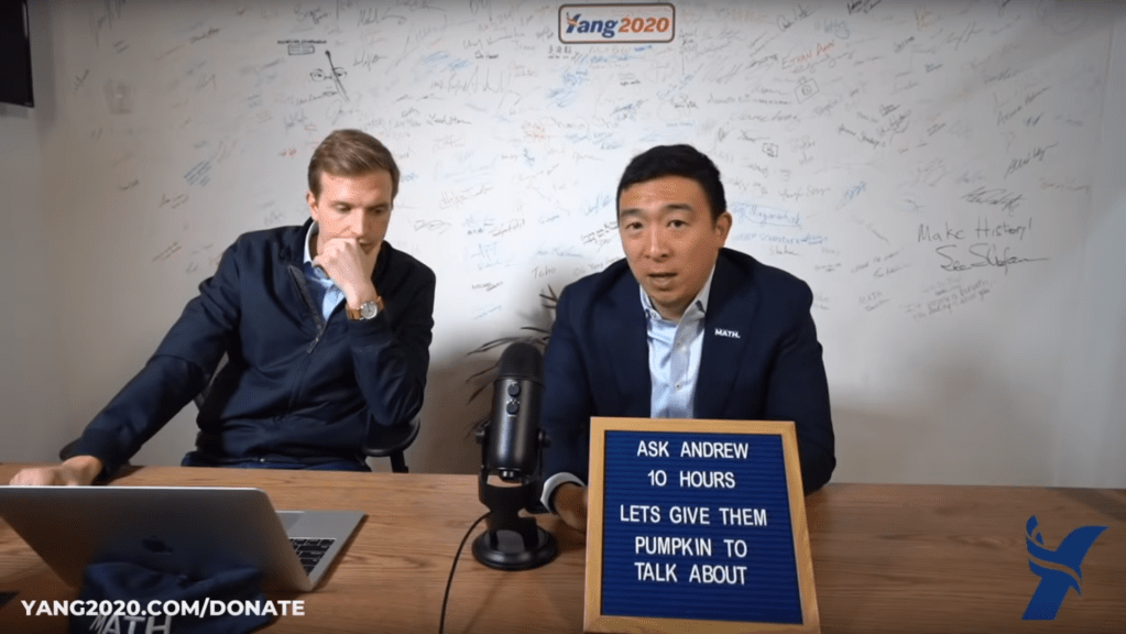 Andrew Yang hinted at having yet another “surprise” for the October debate. He announced it during the final question of the debate: A livestreamed ten hour question-and-answer session for voter-submitted questions. The streams were broadcasted on YouTube and Twitter, where he answered tweeted questions with the accompanying hashtag #AskAndrew. He also answered questions on the public online forums Quora and Reddit. Erik Williamson reveals how it went.