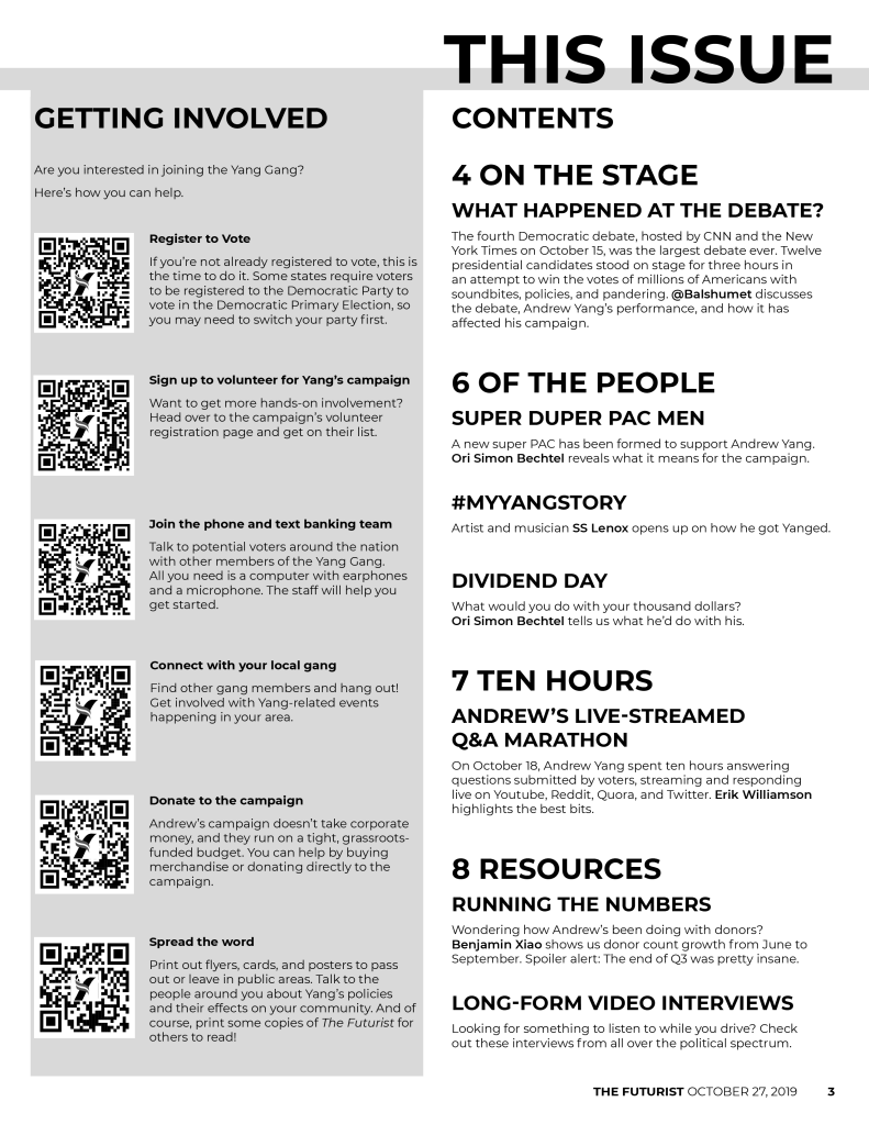 As we continue to cover Andrew Yang’s campaign, we invite you to submit questions about his policy proposals and ideas. We hope that you’re just as excited as we are about this crazy political journey.
