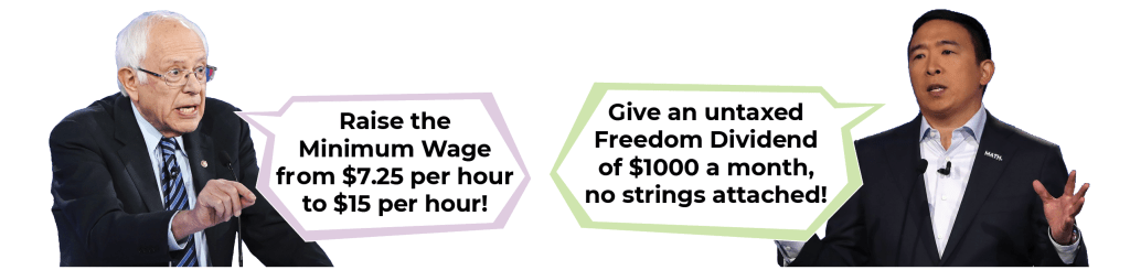 The candidates agree that the best way to help people out of poverty is by redistributing the wealth accumulated by the top earners. Both the minimum wage increase and the Freedom Dividend seek to address that issue.